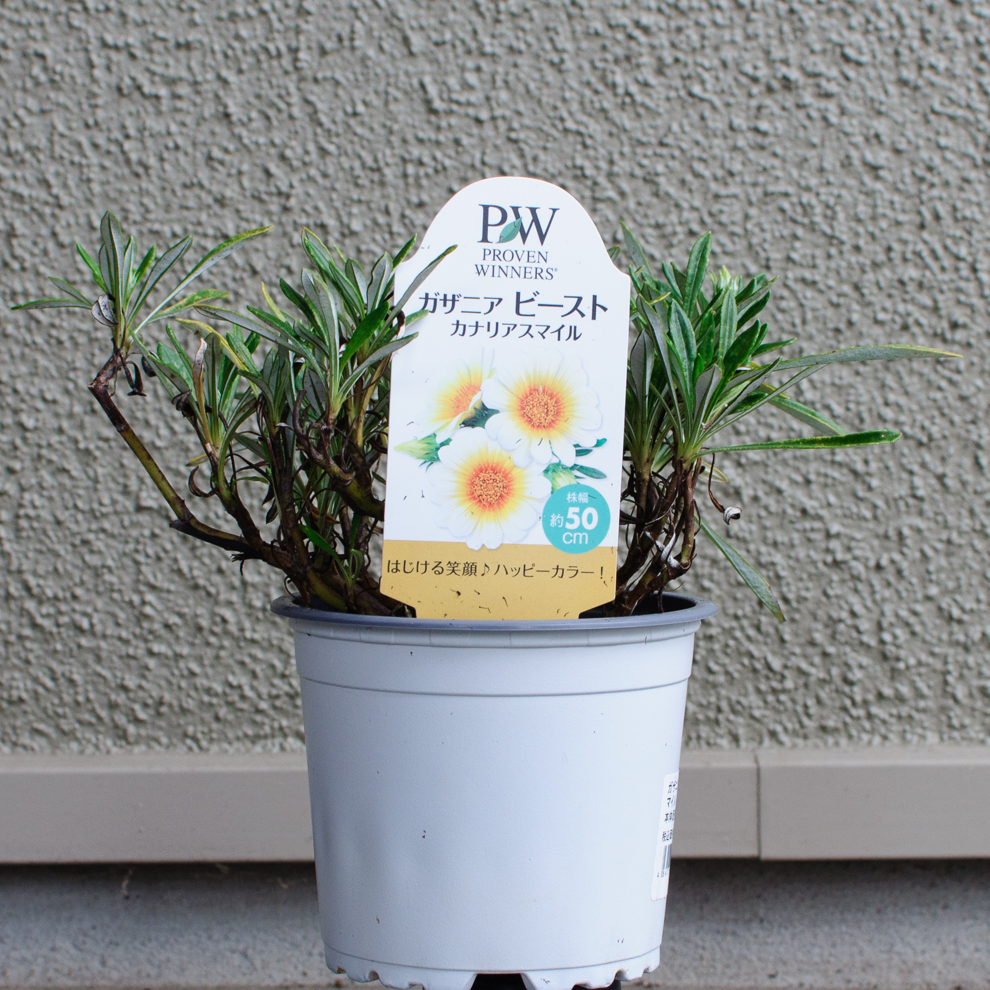 PWのガザニアビースト カナリアスマイルを買いました。秋まで咲くので、これかえら2か月以上、花を楽しめると思います。さらに、冬越しできるため、来年は大株にしてたくさんの花が咲くことを期待しています。
