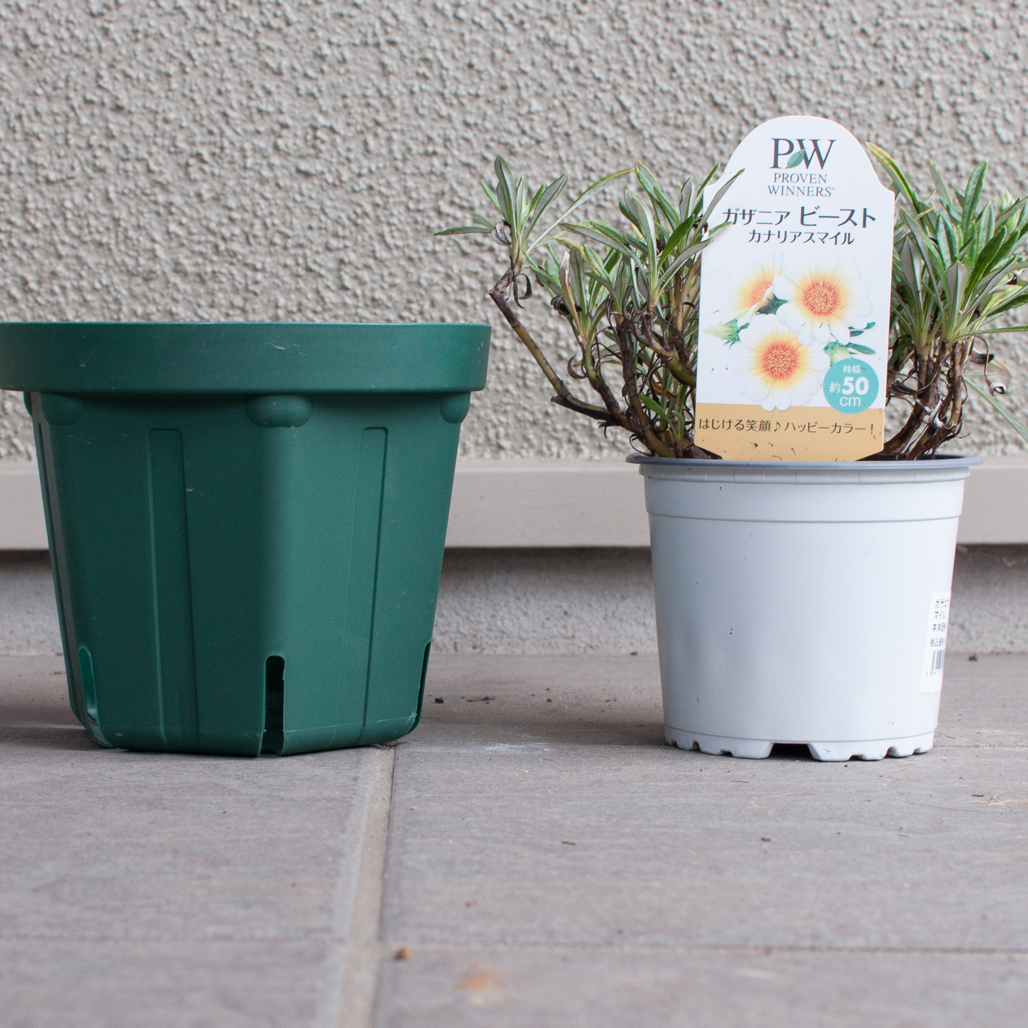 3号ポットに入っていた苗を5号スリット鉢に植え替えました。8月にガザニアを植え替えるのは、根を痛めて枯らす可能性がありますが、3号ポットのままでは小さすぎるので、今回は植え替えることにしました。2週間ほど半日陰で様子をみて、元気に育ってくれるのを楽しみに見守ります。
