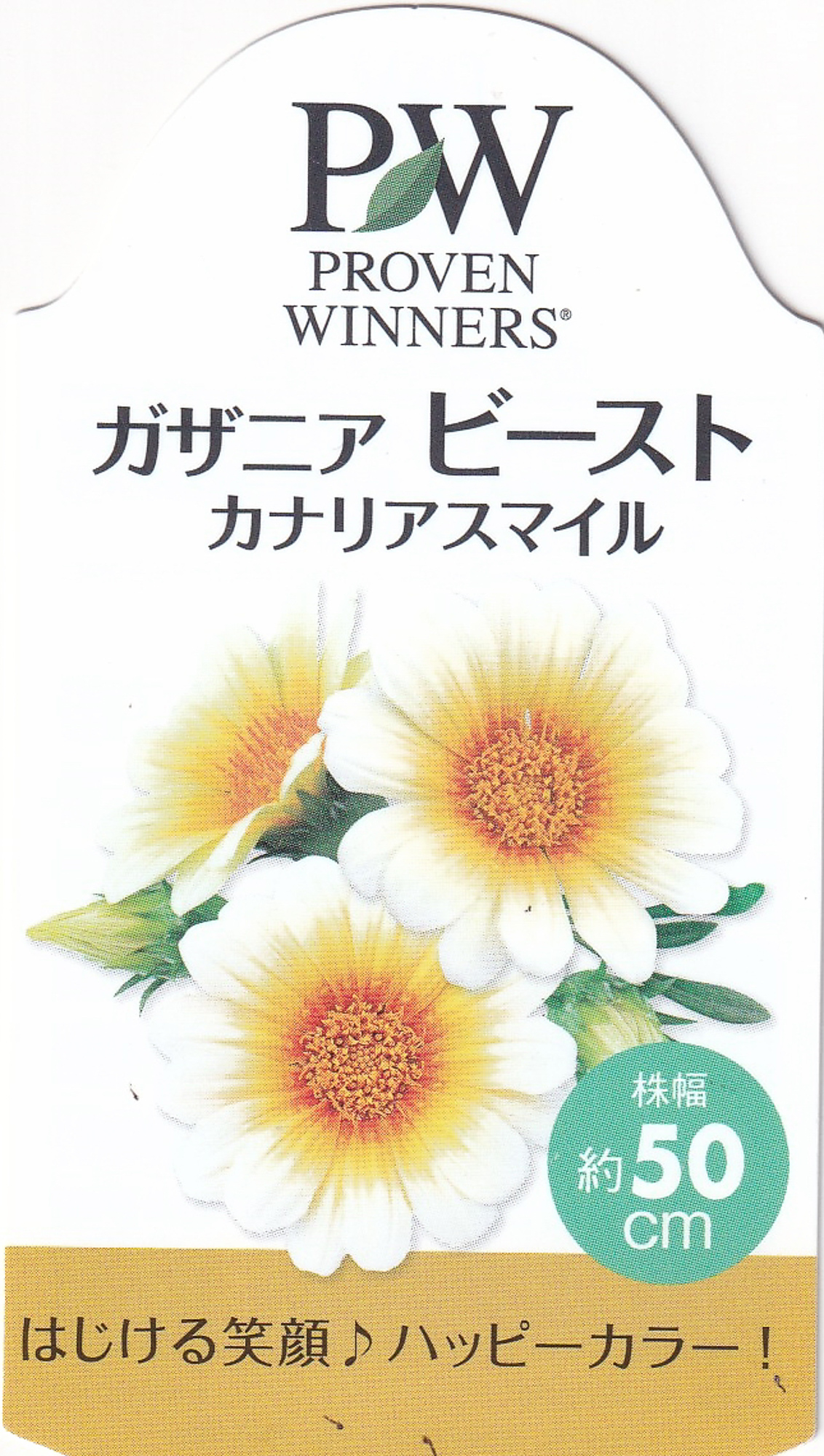 PW ガザニア ビースト カナリアスマイルを購入しました。PWのホームページによると、「獣のような強健さ」を持つガザニアビーストであり、それでいて「小鳥のような可愛さ」を併せ持つカナリアスマイル、とあり、この売り文句が気に入り、つい買ってしまいました。